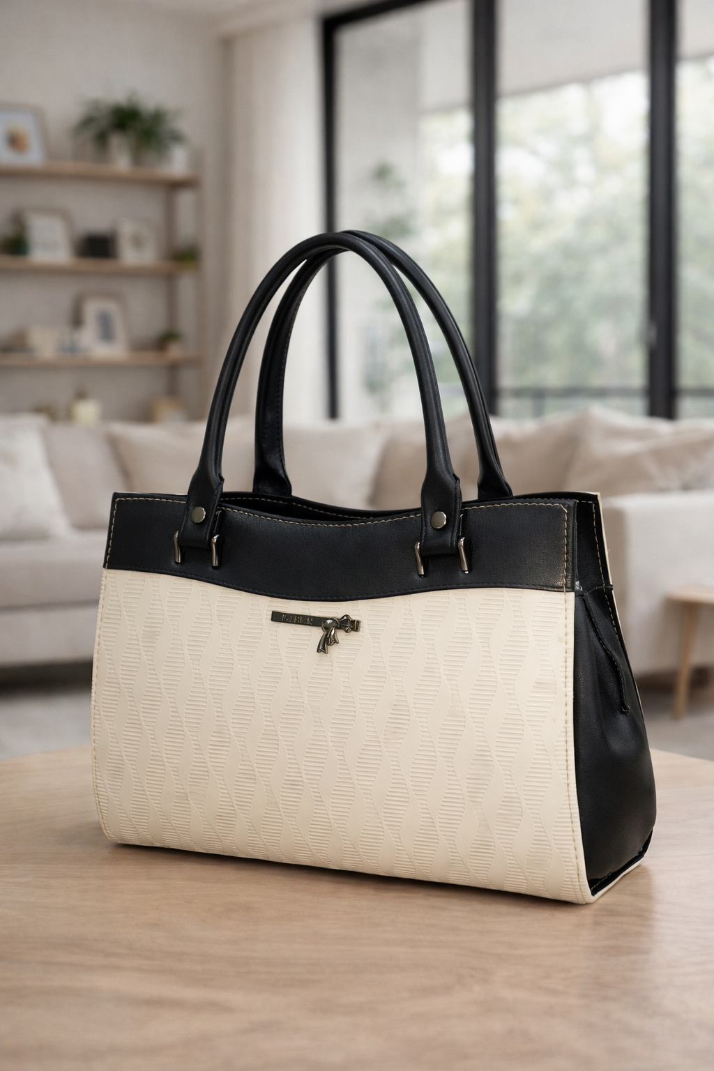 - Add effortless elegance to your daily style with this stylish women’s handbag, featuring a refined black and beige color combination with a textured front panel for a modern, sophisticated look. Made from high-quality PU leather, this handbag offers durability, a smooth finish, and long-lasting use.