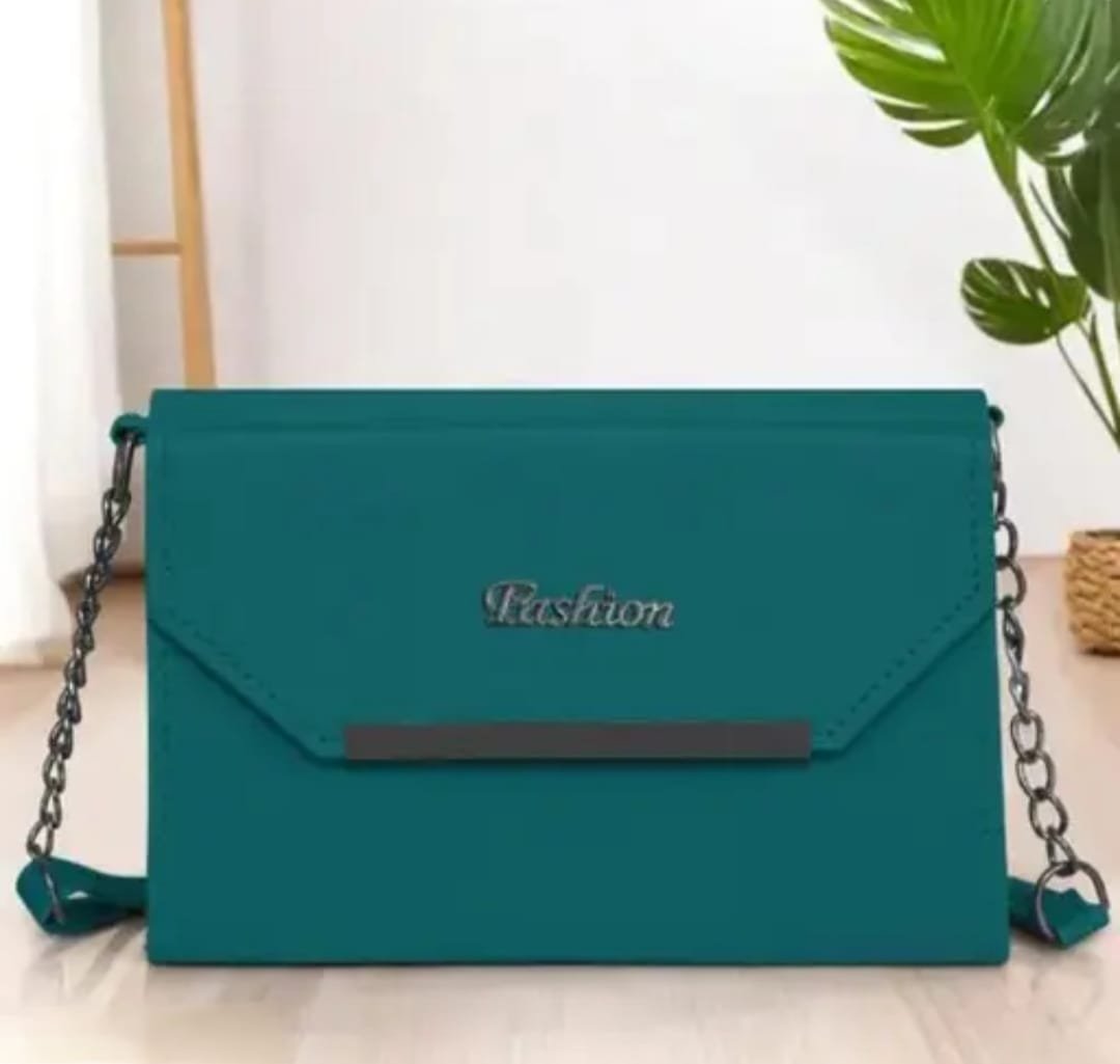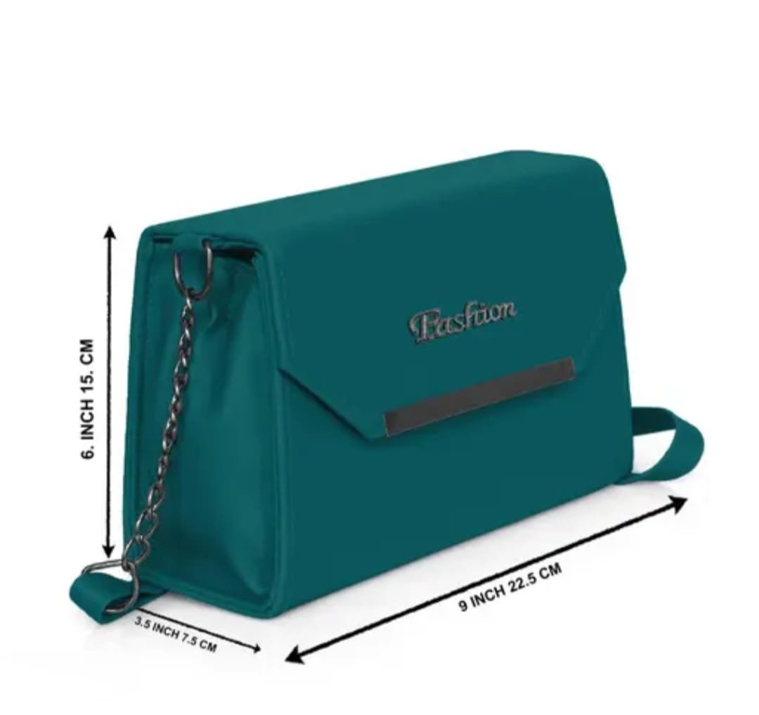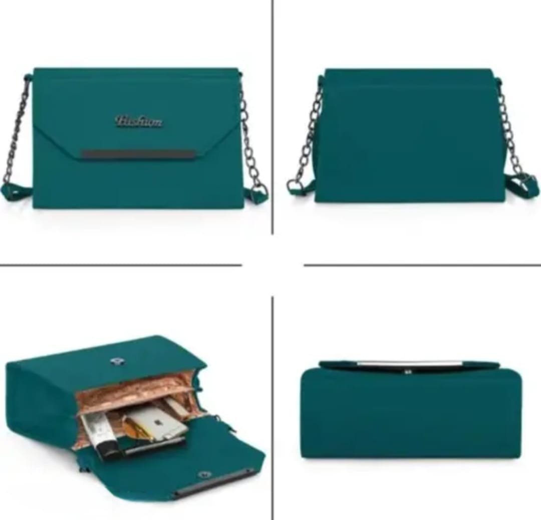 Add a touch of elegance to your everyday look with this stylish teal crossbody sling bag for women. Designed with a sleek structured silhouette and a modern flap closure, this fashionable shoulder bag features a durable metal chain strap that enhances both comfort and style.