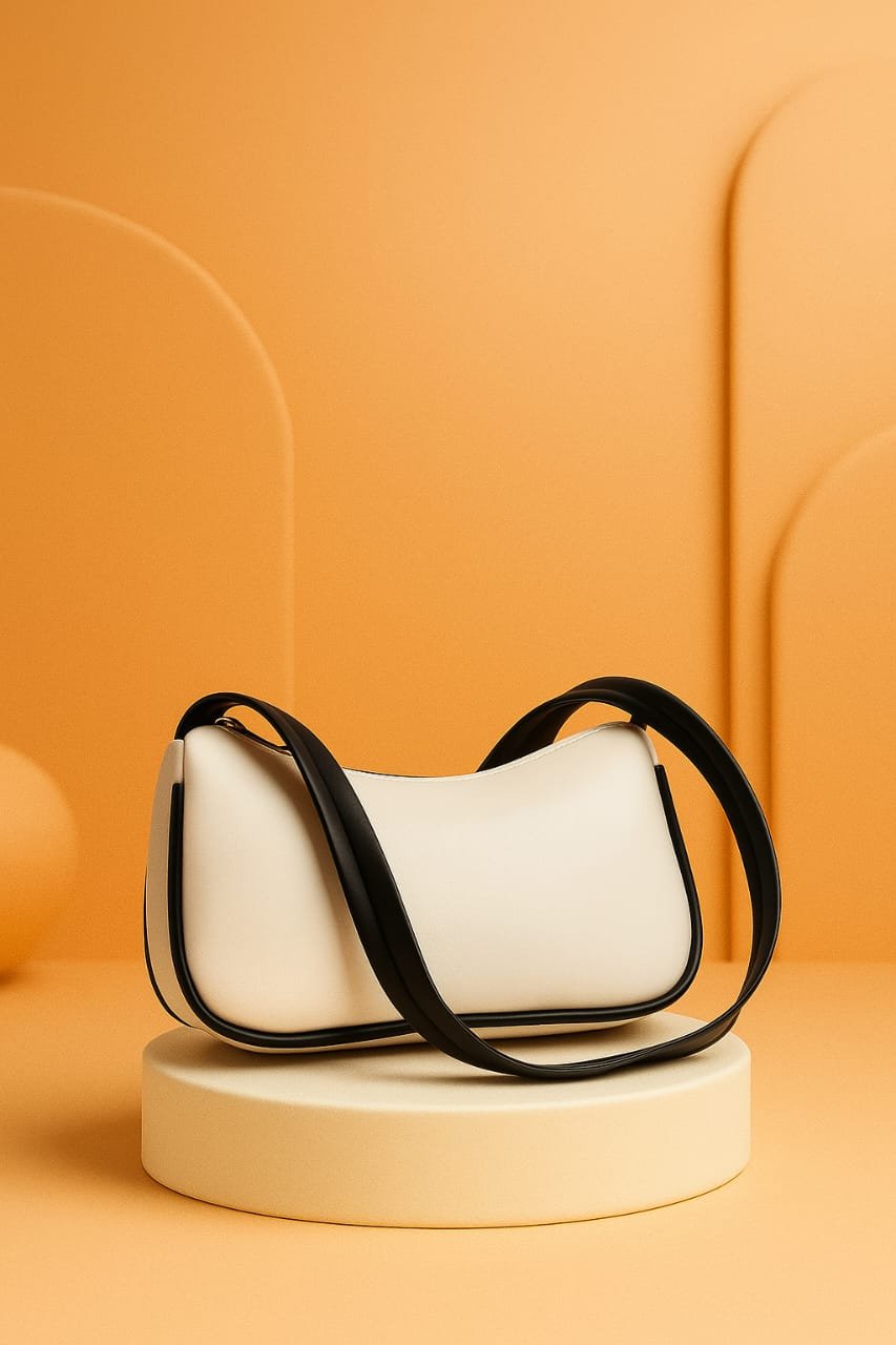 Enhance your everyday fashion with this elegant white shoulder bag for women, designed with a sleek minimalist look that never goes out of style. Featuring a smooth structured finish with contrasting black edges and a comfortable shoulder strap, this stylish crossbody handbag is perfect for modern women who love clean and classy accessories.
