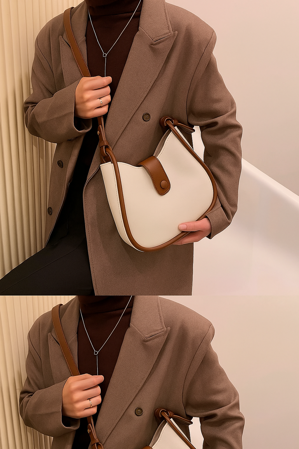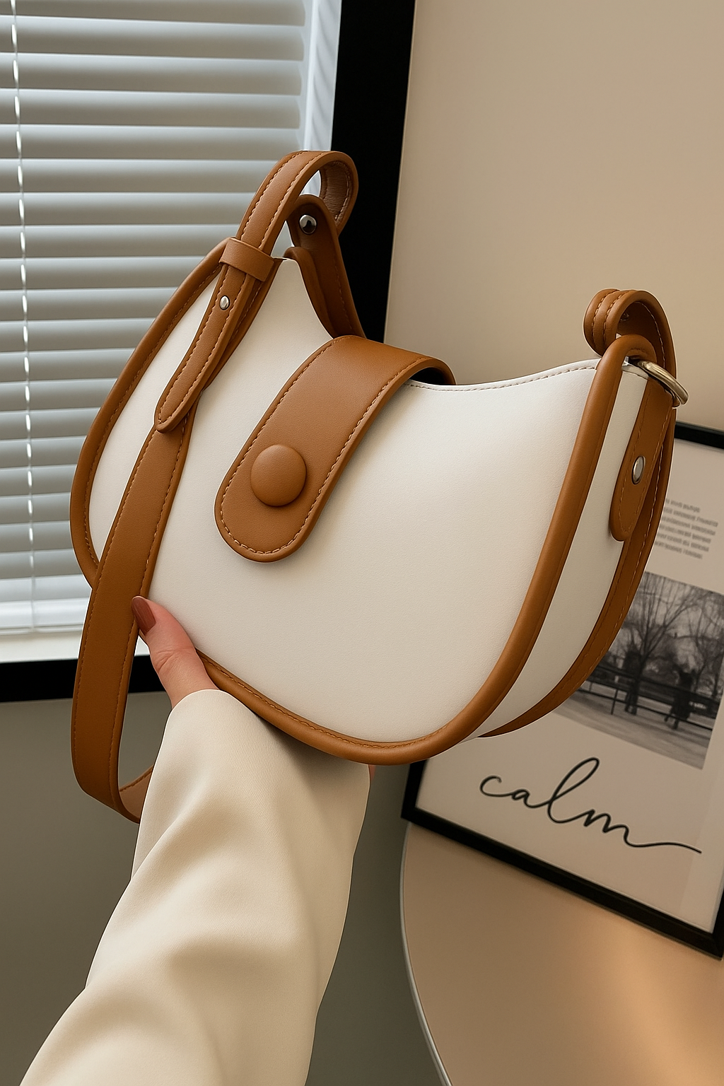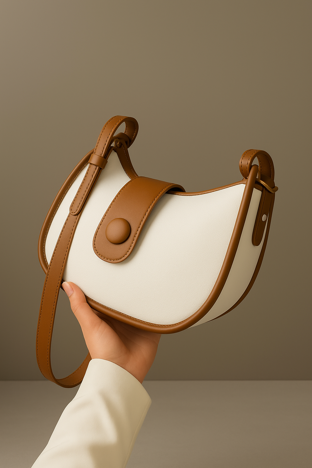 Elevate your everyday look with this elegant women’s cream and tan shoulder bag, designed for effortless style and practicality. Made from premium faux leather, this bag features a soft cream body paired with warm tan brown straps and a stylish button-flap accent that adds a modern minimalist touch.