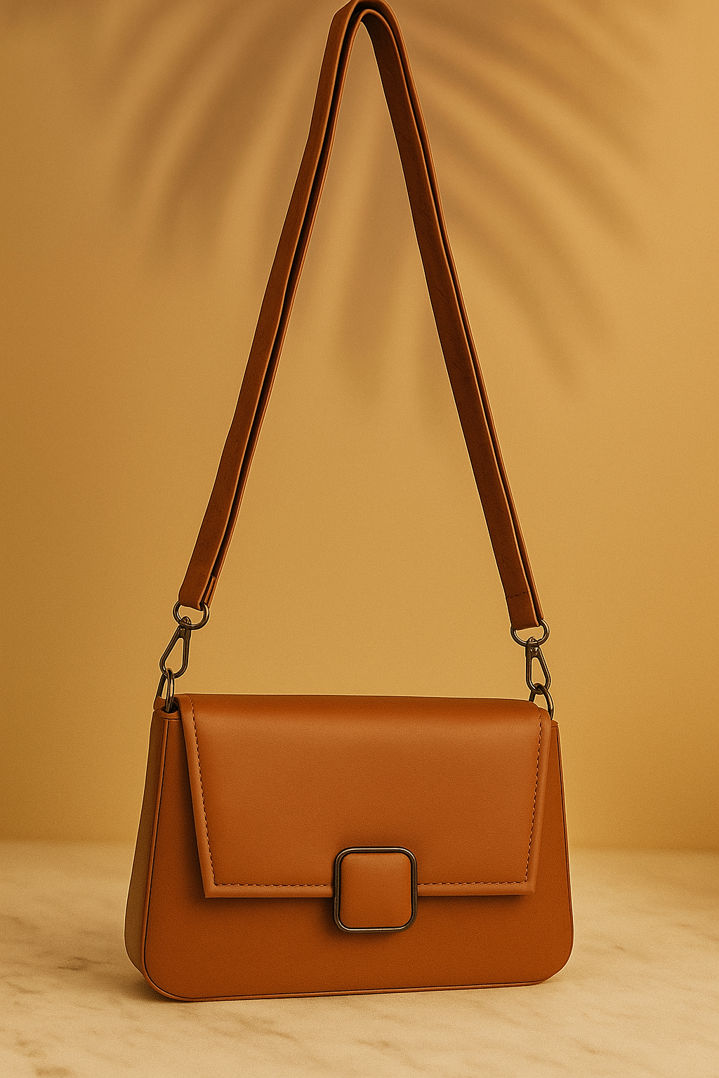 Add timeless sophistication to your everyday wardrobe with this elegant women’s tan crossbody shoulder bag. Crafted from premium faux leather, this stylish purse features a smooth solid-color finish, a structured silhouette, and a classic flap design with a modern buckle detail that elevates any outfit.